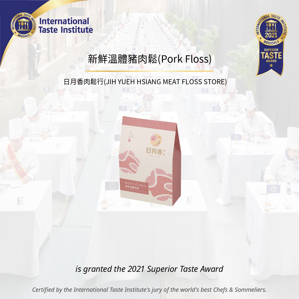 感謝國際級評審能給予日月香肉鬆此項殊榮,我們也會持續努力,希望能讓更多人認識台灣的美食,讓台灣美食也能跨越國際。
